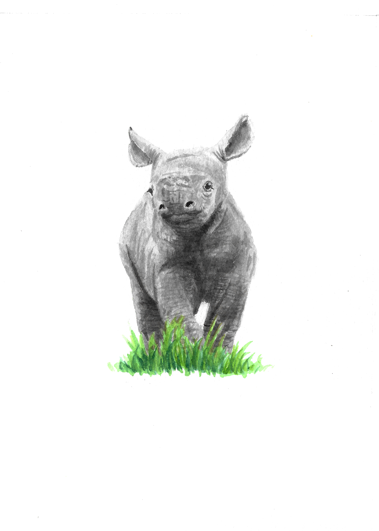 Baby Rhino – 5×7 Watercolour