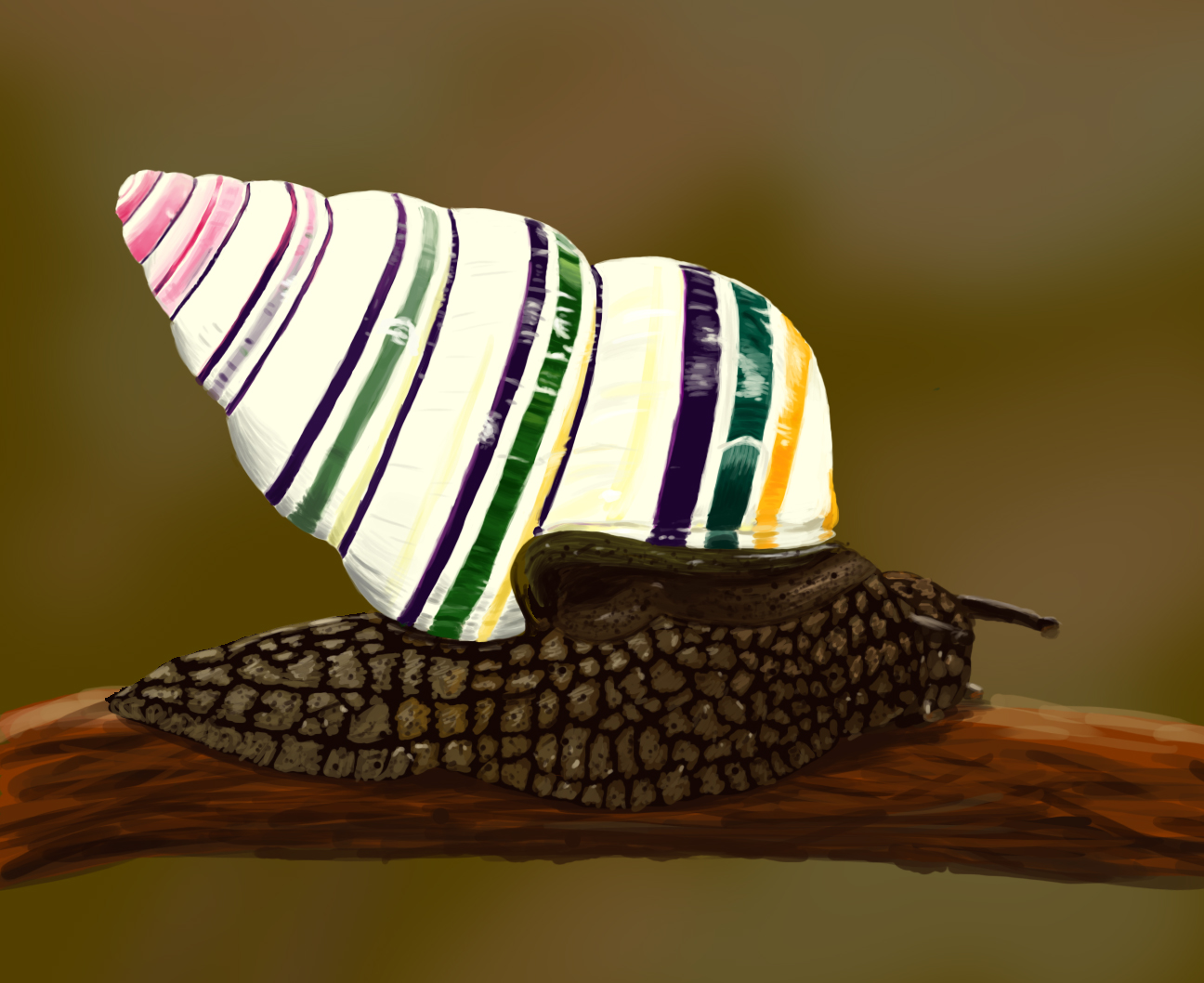 A digitally painted candy cane snail