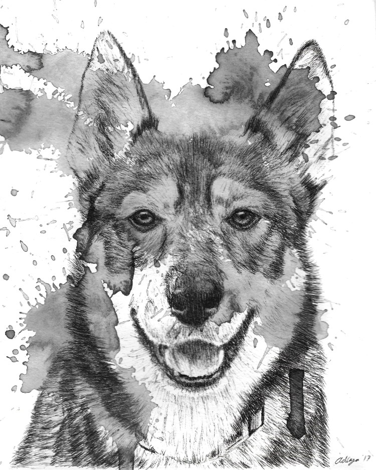 Ink and watercolour portraits are a unique and fun way to capture your pet’s personality. A highly realistic ink drawing of your pet is splashed with colour, to make the portrait pop.