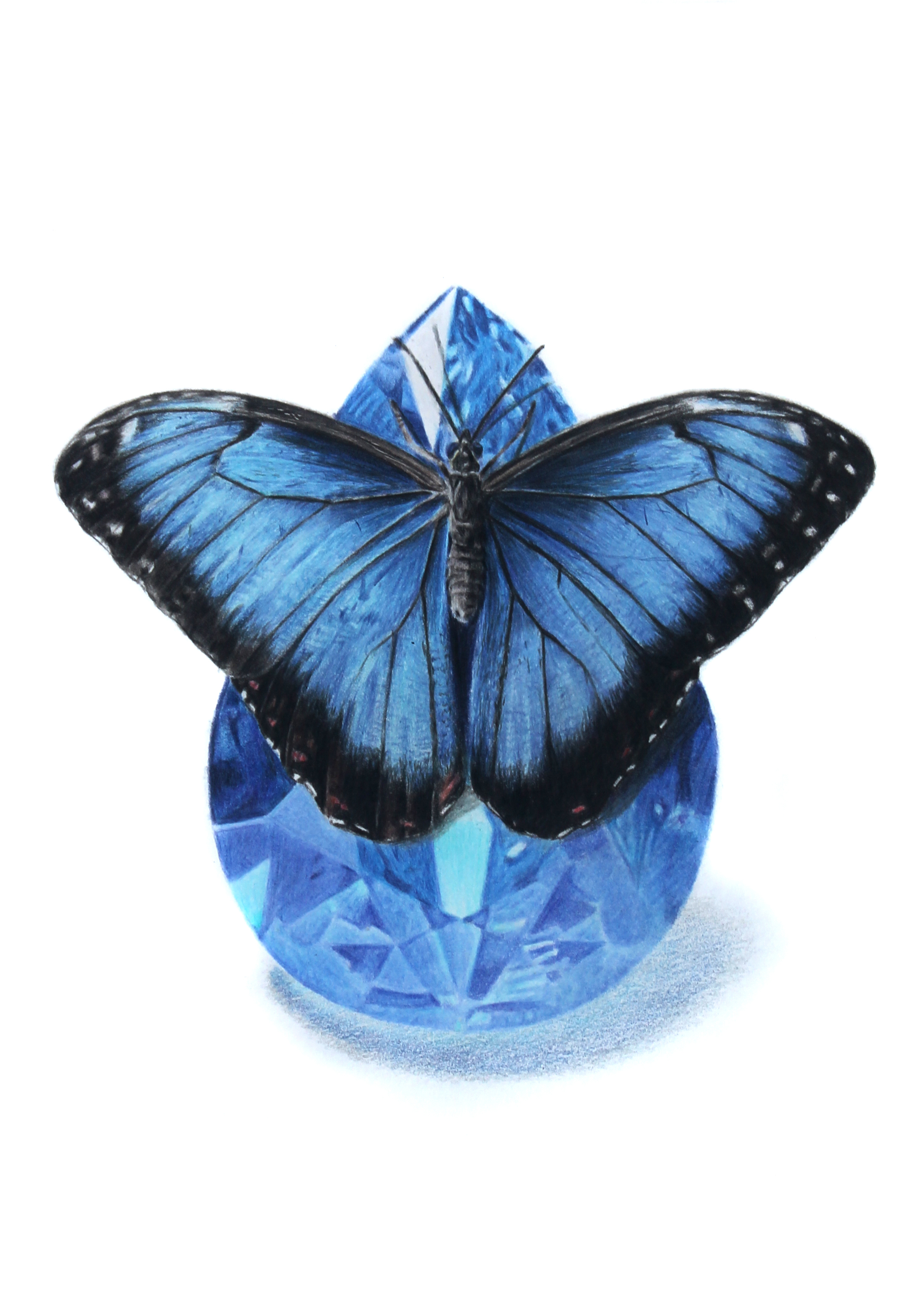 September: Sapphire – Blue Morpho – 5×7 Coloured Pencil
